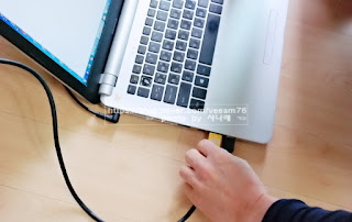 그런데 이렇게 노트북을 위로 올려 사용할 때 조심해야 할 것이 있습니다. 검정ㅠㅠ저 케이블을 발로 깔고 노트북 떨어져서 난리가 났었어요이건 정말 조심해야 할 주의성, 조심성 없는 아이라서 걱정이에요