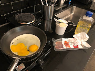 이것저것 조합한 스크램블에그하몽같은 햄을 던져서 치즈를 넣었더니 소금 뿌릴 필요가 없네~~ 전날 먹고 남은 매그놀리아 바나나 푸딩과